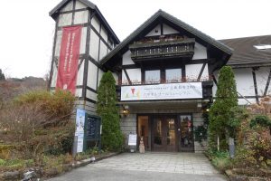 三ノ宮から車で約30分。途中からはくねくねとした山道で「本当にこんなところにあるのかな?」なんておもいながら車を走らせていると、右手に広々とした駐車場が見えてきて、その奥にドンとドイツ調の作りをした建物が!