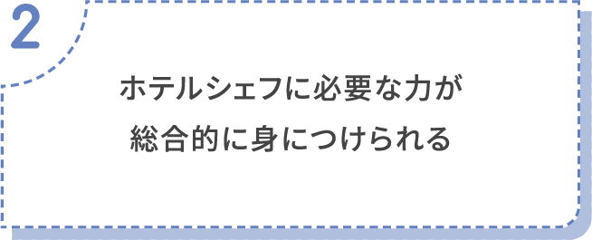 2年次は、ホテルシェフに必要な素養を実習を通して身につけます。