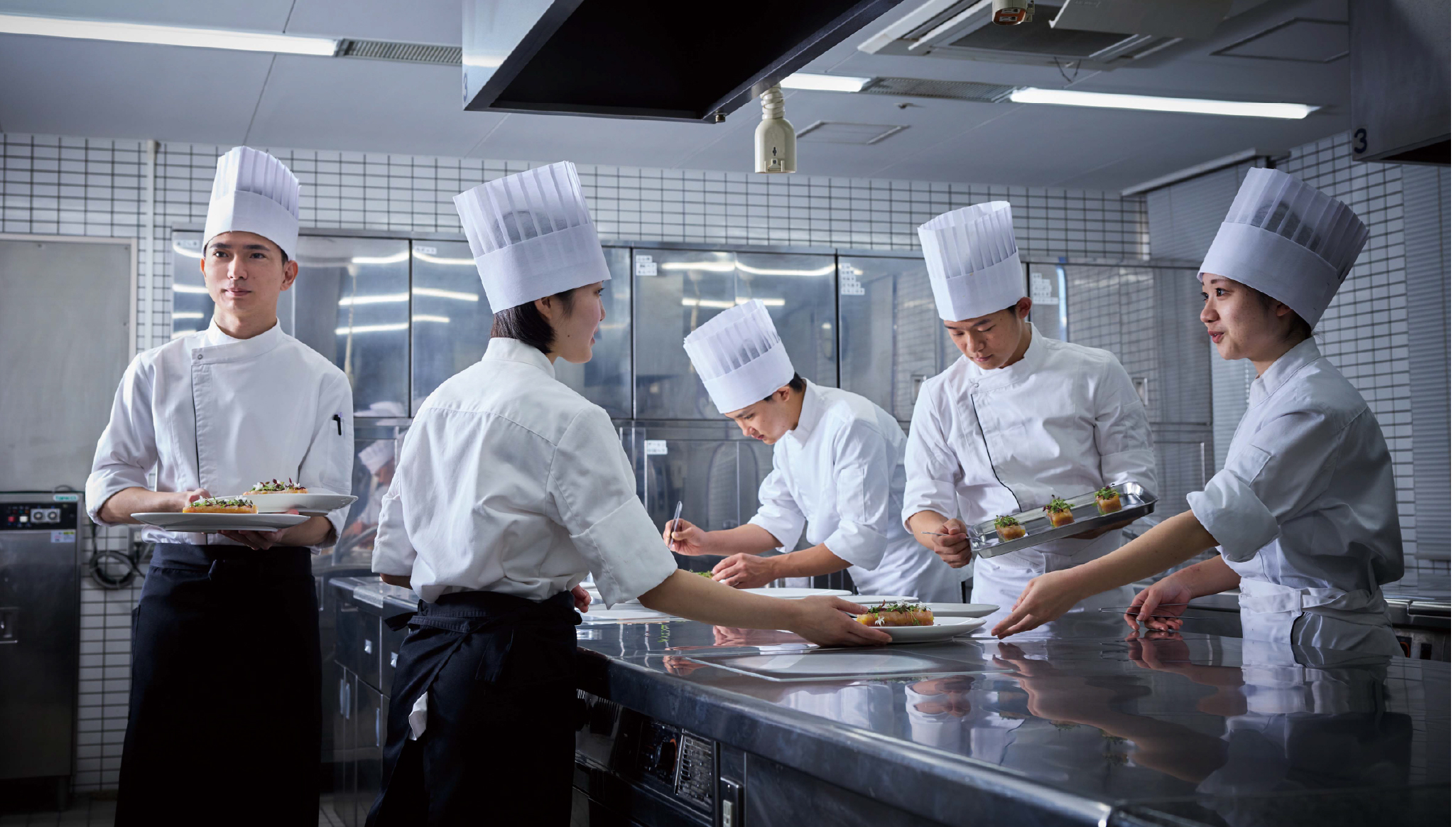 ホテルシェフは、ホテル内のレストランから大人数の披露宴や宴会まで、飲食部門を幅広く担当。料理人としてワンランク上のスキルが求められます。
