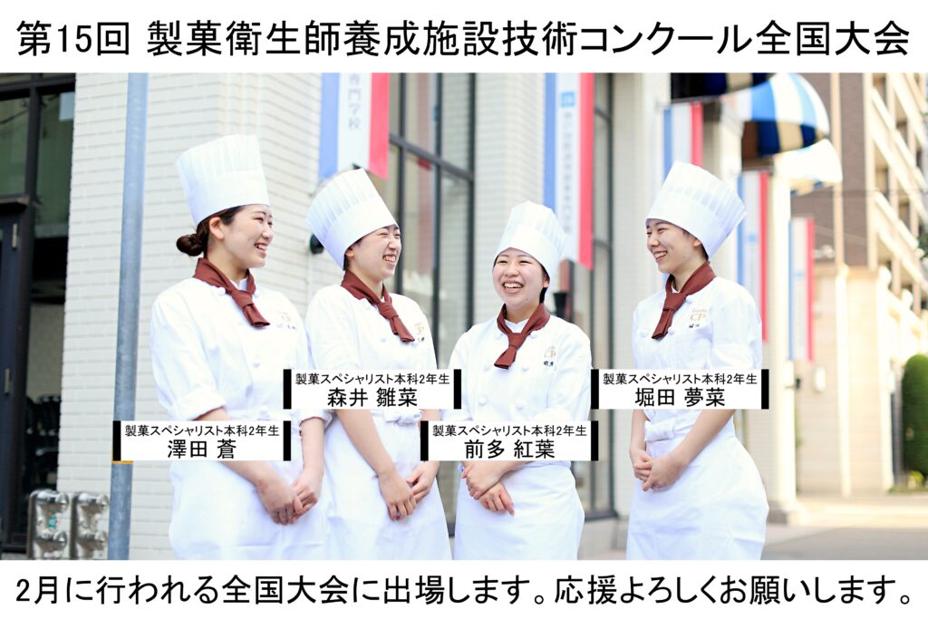 第15回製菓衛生師養成施設技術コンクール全国大会に本校から4名の学生が出場します