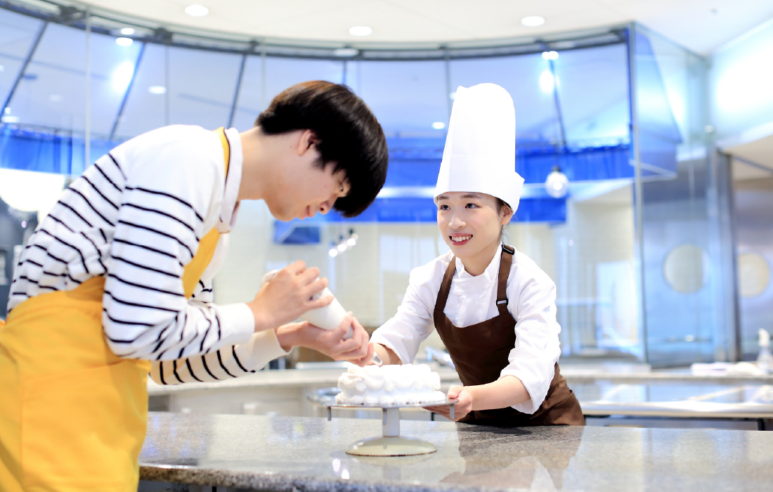 調理と製菓、どちらも開催。一流の先生の指導が受けられます。